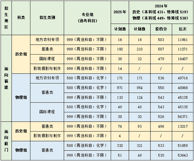 (2)今年继续面向福建省厦门市单列招生计划。