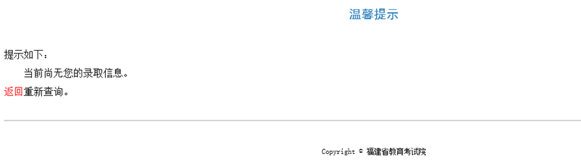 提醒:若考生未被录取,请及时在规定时间内填报相应批次的征求志愿。